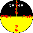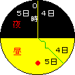日付変更線が0時の線に重なって4日の領域がなくなり、全世界が5日の領域に入ります。この瞬間から日付変更線の西には新たに6日の領域が現れ始め、 さらに3時間後(最初から12時間後)には