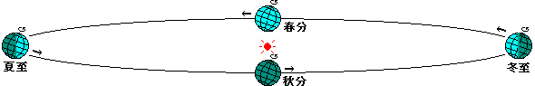 図上で地球が一番右にある時は太陽の光は地球の南半球によく当たり、一番左にある時は北半球によく当たることが分かります。