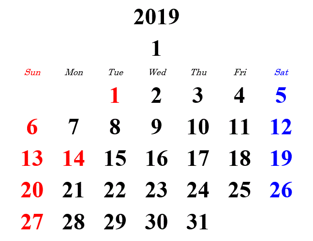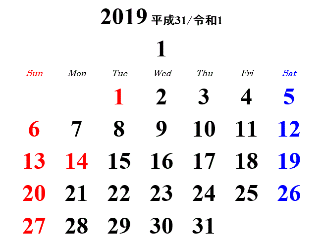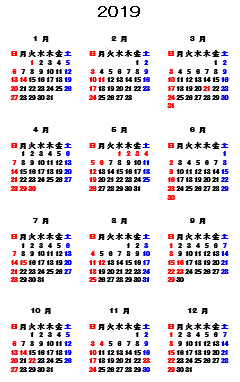 2019印刷用カレンダー