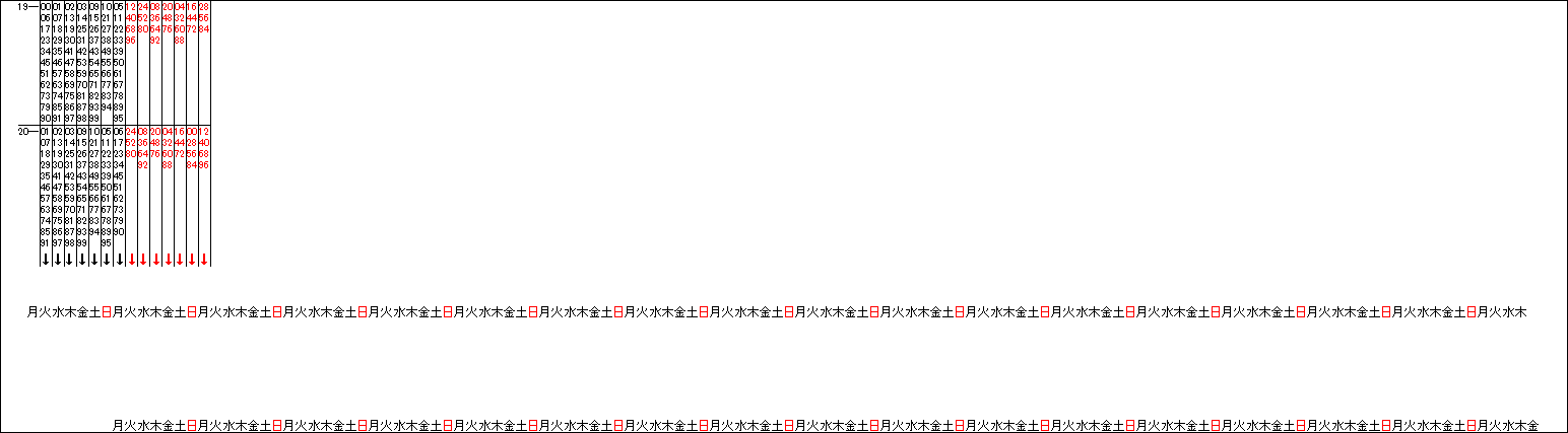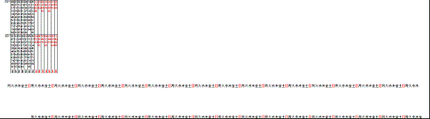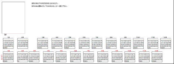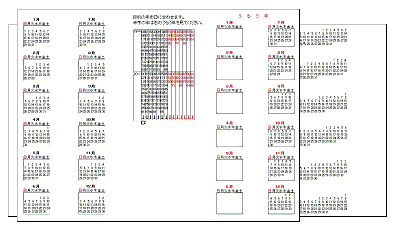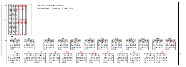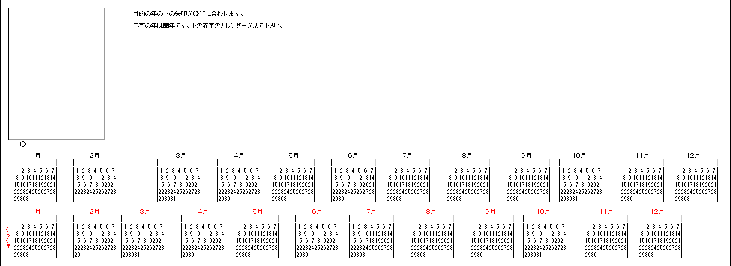 早見表の目的の年の矢印を○に合わせると12ヶ月のカレンダーが表示されます。