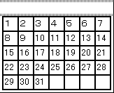 手作り万年カレンダー サイコロ式はこちら 早見表を利用して手作り万年カレンダーを作りましょう。 1.簡易版 1ヶ月を示すいちばん簡単な方式。 1.簡易版 日付を固定して曜日の表示を動かす形式です。 厚紙で下図のようなセットを作り、裏面に早見表を貼り付けます。 ・台紙