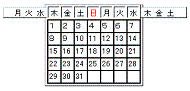 上のようにカレンダーを描き、点線の部分2ヶ所に細長い棒のように切った厚紙を貼ります。 ・曜日の枠