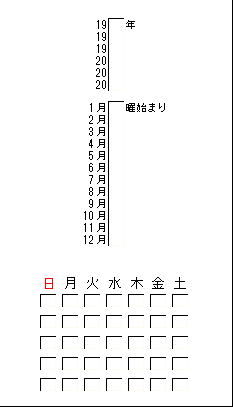 曜日を記入し、35個の窓を開けます。 ・日付のベルト